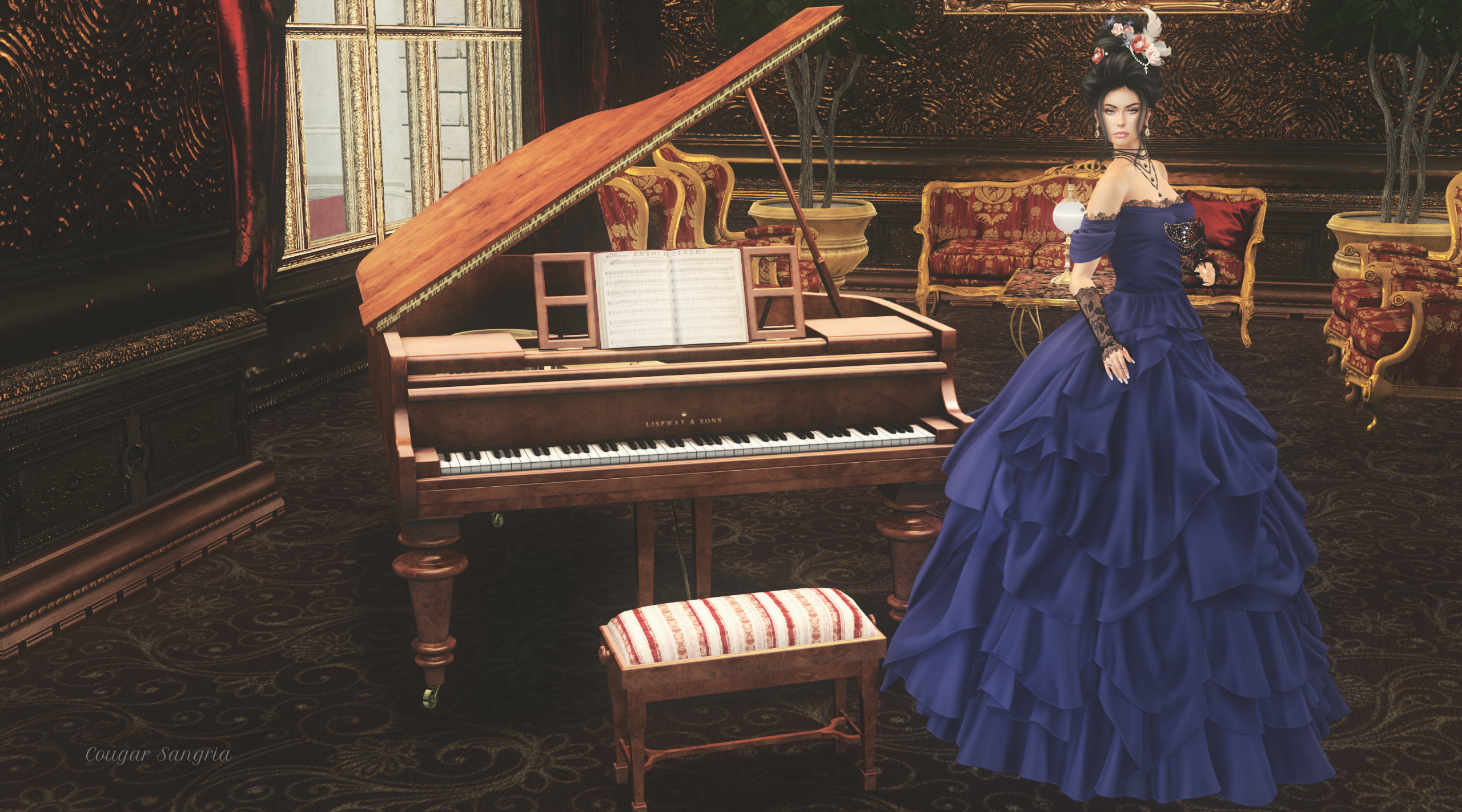 The ‘to-die-for’ gown I’m wearing is by Poison Rouge. For want of a better description, Lovelace Victorian Dress is just exquisite. It’s perfect for anyone that roleplays the Victorian Era or maybe Western. I am wearing the color midnight. This is just one of several items I snapped up by Shena Neox from past events.