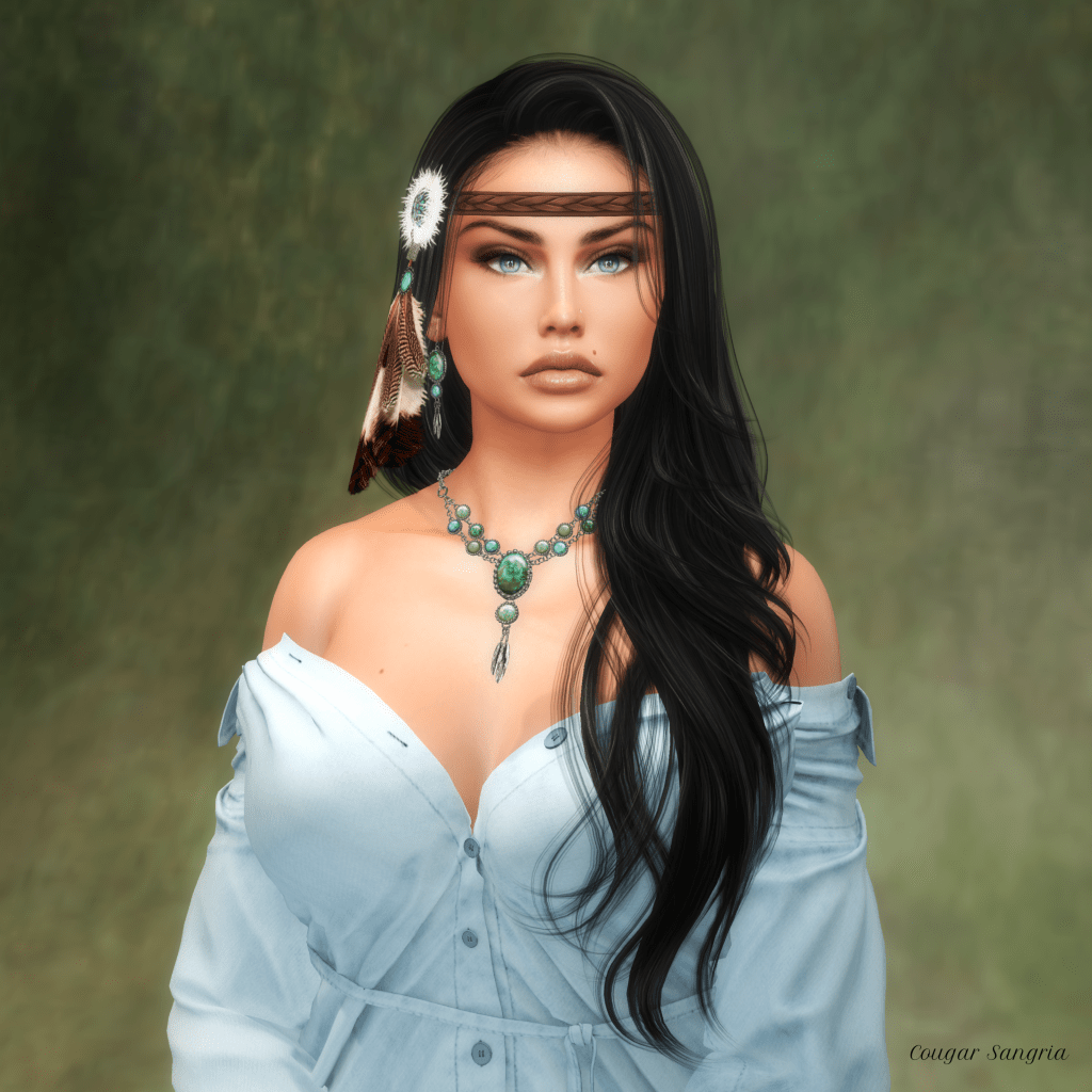 The jewelry set I am wearing is by EarthStones. It’s a vintage set called “SOAR.” It is one of the most precious pieces in my collection. I don’t wear it out, as the complexity is downright outrageous. Still, I love it, and wear it for photos. Maybe one day, it will be reproduced in mesh?